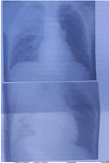 Escolar de 8 anos procura serviço de saúde com quadro de febre aferida e tosse há cinco dias. Exame físico: afebril, frequência respiratória de 50 ipm, desconforto respiratório moderado. Ausculta pulmonar: murmúrio vesicular diminuído em hemitórax direito, com estertores crepitantes em ápice e 1/3 médio também à direita. Radiografia visualizada abaixo. Qual a melhor conduta neste momento (conforme imagem do caderno de questão)?