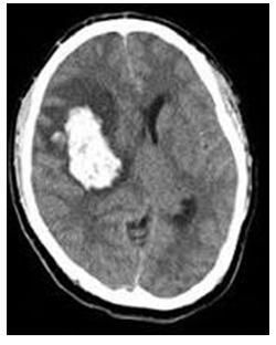 Homem de 65 anos apresenta queda da própria altura e é levado ao Pronto Atendimento. É portador de hipertensão arterial sistêmica e fibrilação atrial. Faz uso irregular de hidroclorotiazida, enalapril, anlodipino, clonidina e rivaroxabana. Ao exame físico, PA: 226X122mmHg, FC: 102bpm, FR: 22ipm. Apresenta-se sonolento, abre os olhos e verbaliza ao chamado e obedece aos comandos. Apresenta redução da força no dimidio esquerdo. Sem outras anormalidades.