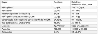 Menina, 18 meses de idade, está em seguimento de puericultura, sem nenhuma queixa. Nega comorbidades ou uso de medicações contínuas. Avaliação clínica em bom estado geral; ambos os valores de peso e altura entre os percentis 15 e 50 (curvas OMS). Na consulta anterior foi solicitado hemograma completo e reticulócitos para a avaliação de quadro de discreta palidez cutânea, sem outras alterações ao exame clínico. Os resultados encontrados são: (Conforme imagem do caderno de questões).