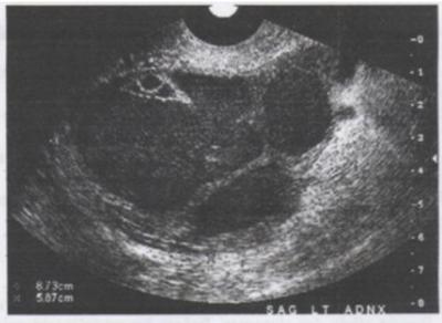 Mulher de 20 anos de idade, GO, DUM há 10 dias. HMA: iniciou quadro de dor em andar inferior do abdome há 30 dias, com intensificação há 5 dias. Além disso, refere dispareunia de profundidade há 20 dias, e febre de 39°C há 2 dias. Relata relações sexuais com parceiros eventuais. EF: descorada (+/+4), febril (38,8°C), hemodinamicamente estável. Abdome: dor em hipogástrico, porém sem dor à descompressão brusca. EG: Especular: Presença de corrimento amarelado vindo do colo uterino, com odor fétido. Toque: Colo fechado, dor à mobilização do colo, útero de tamanho normal e dor em topografia de anexos bilateralmente. EI: A US evidenciou massa de cerca de 6 cm em anexo esquerdo, conforme imagem abaixo. (VER IMAGEM).Assinale a alternativa correta:
