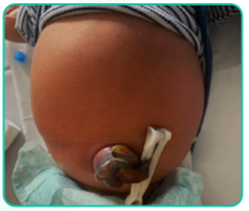 Recém-nascido (RN) do sexo masculino, 5 dias de vida, está internado em Unidade de Cuidados Intermediários para manejo de icterícia neonatal. Mãe com tipagem sanguínea O positivo, RN com tipagem AB positivo, Coombs negativo, Eluato positivo. Evoluiu com icterícia neonatal precoce e foi iniciada fototerapia com 20 horas de vida. Hoje colheu bilirrubinas, cujos níveis indicaram a suspensão da fototerapia. Foi indicada a alta hospitalar. Ao orientar a família, mãe refere que a criança está um pouco mais irritada. Foi notada hiperemia peri-umbilical conforme figura abaixo, com saída de secreção malcheirosa pelo coto. Está indicado nesse momento:
