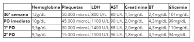 Você assume o plantão e é chamado para avaliar uma puérpera que está internada na Unidade de Terapia Intensiva (UTI) com o diagnóstico de síndrome HELLP. Está no segundo pós-operatório de parto cesárea com 36 semanas, apresentando progressiva piora clínica e laboratorial, conforme tabela a seguir. O intensivista já iniciou o sulfato de magnésio e está questionando possíveis diagnósticos diferenciais.