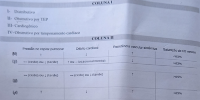 Em relação aos parâmetros hemodinâmicos em pacientes em contexto de choque, correlacione a COLUNA