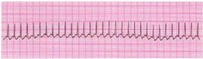 A intervenção apropriada a uma criança de sete anos que apresenta o ritmo cardíaco representado abaixo (VER IMAGEM), COM letargia e perfusão de quatro segundos e pulso muito rápido > 250 bpm, cujo estabelecimento do acesso vascular NÃO foi possível, é